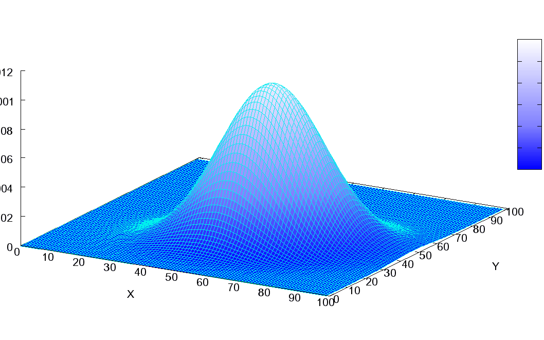 For example, here is a visualization of a two-way multivariate normal distribution as a surface, from a three-quarter view: